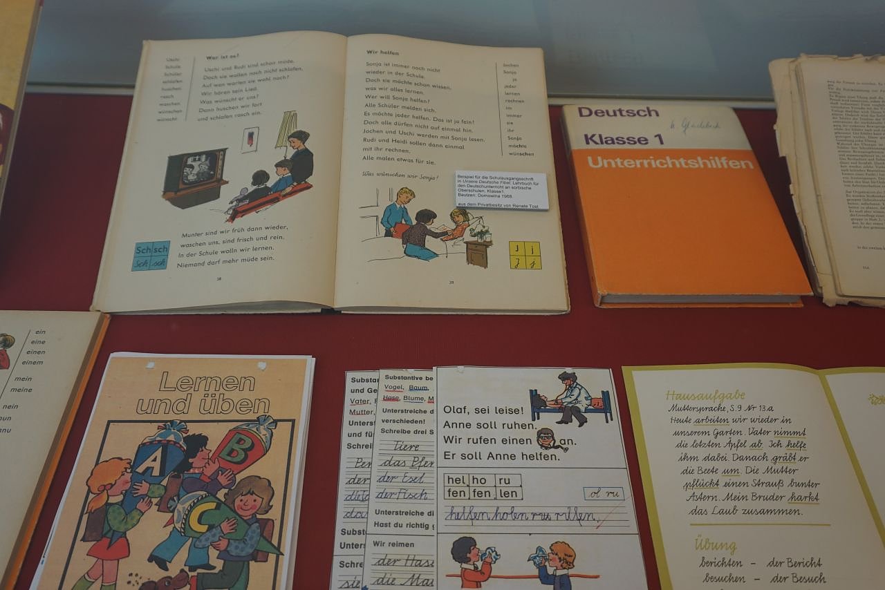 Alte Fibeln und weiteres Lehrmaterial sind ausgestellt. (Foto: Susanne Schedwill)