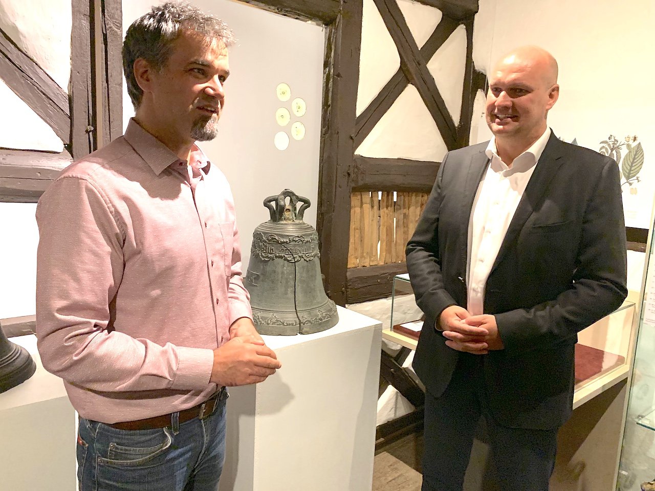 Weil das irgendwie schief ging, trafen sich heute im Tabakspeicher die beiden parteilosen Stadtoberhäupter, um die Glocke an ihren Bestimmungsort zurückzuführen. Es ist einfach unglaublich, dass wir sie nach so vielen Jahren zurückbekommen, freute sich Wytrieckus, der die Großzügigkeit der Nordhäuser lobte: Das ist keine Selbstverständlichkeit, denn wir haben keinerlei Anspruch darauf. Die Glocke ist damals ganz regulär zum Altmetallpreis verkauft worden.