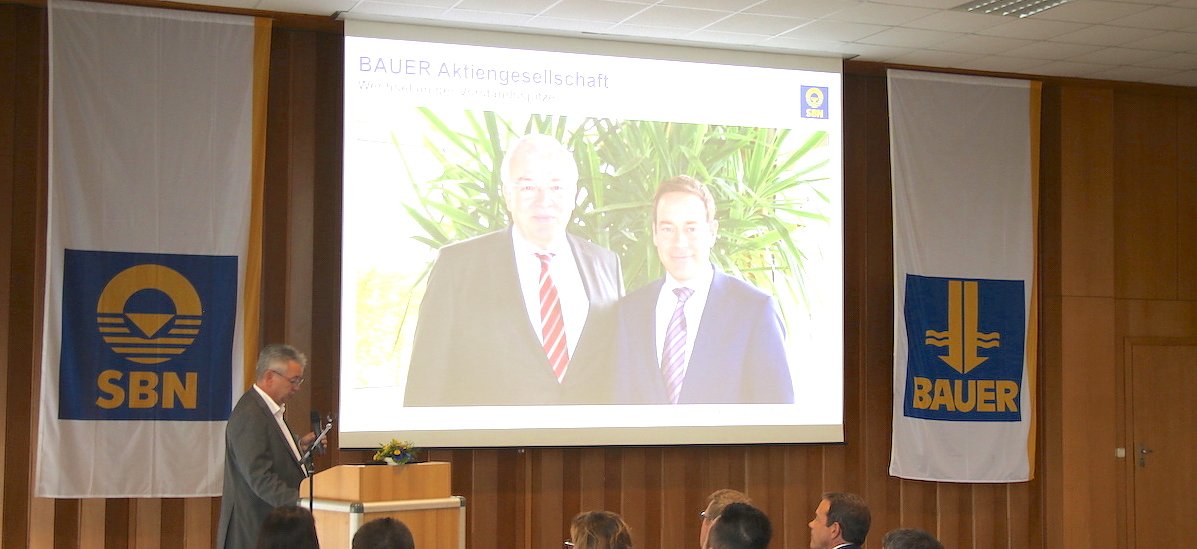 Zum Auftakt drehte sich alles um die Bereiche Water, Energy und Mining und die Ausrichtung der BAUER Gruppe zu diesem richtungsweisenden Zukunftsthema. Der Vorstandsvorsitzende der BAUER AG, Michael Stomberg, war persönlich nach Nordhausen gekommen und stellte in seinem Impulsreferat die Geschäftsfelder und weltweiten Arbeitsorte der Firma vor. Er sprach über gute Erfolge in Deutschland sowie die anstehenden professionellen Herausforderungen der Zukunft. Von Uran-Endlagerstätten in Kanada und Hochdruck-Injektionen war ebenso die Rede wie vom industriellen Diamantenabbau.