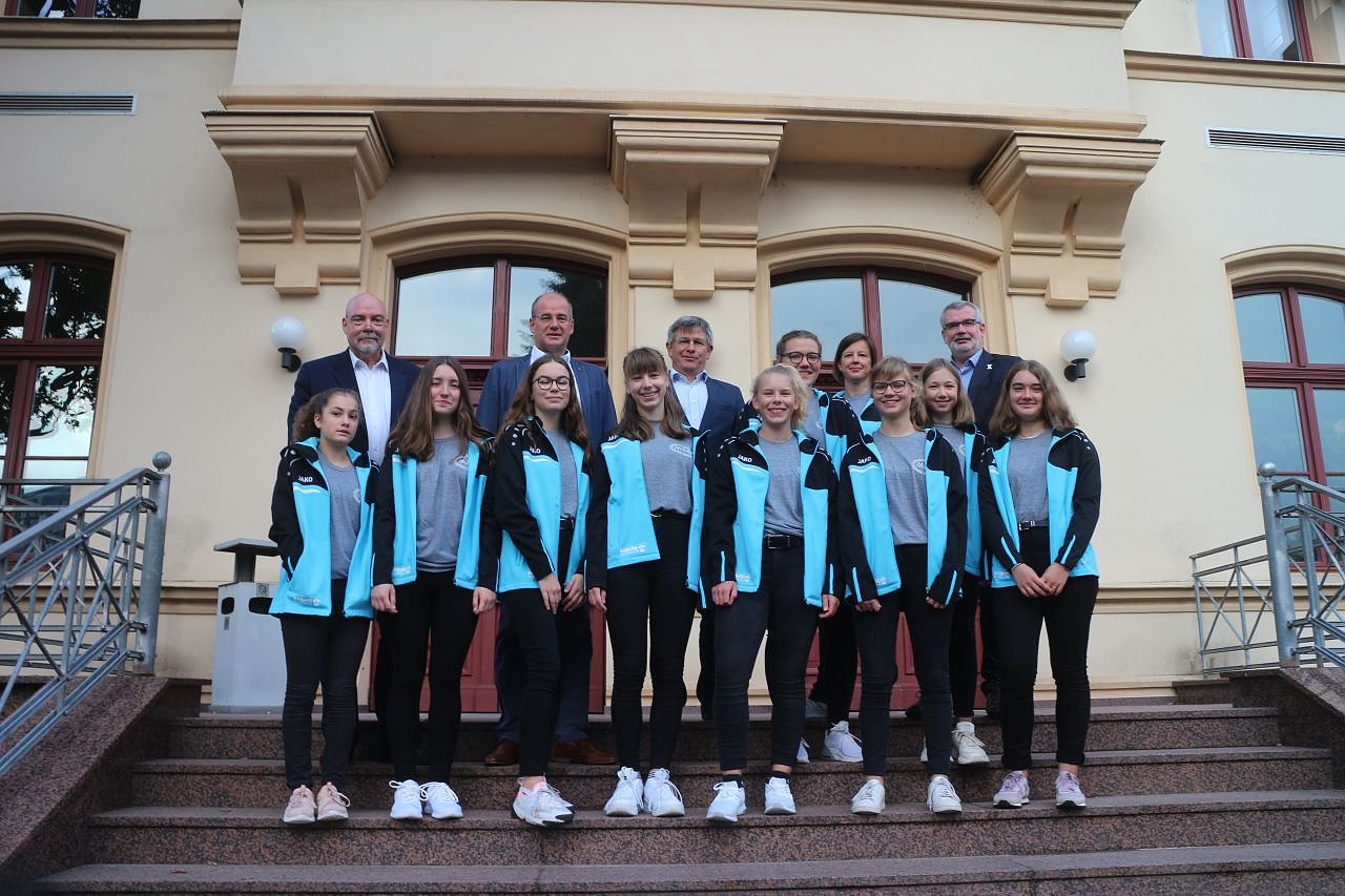 Wir wollen unseren Bestzeiten aus dem vergangenen Jahr überbieten, sagt Sportlehrerin Katja Schanz. Und nicht Letzter werden, ergänzen die Mädchen heute morgen vor dem Landratsamt, wo Matthias Jendricke und Werner Hütcher sie unter vielen Glückwünschen gen Berlin verabschiedeten. Für die Reise gab es vom Landratsamt nicht nur warme Worte, sondern auch finanzielle Starthilfe in Höhe von 500 Euro.