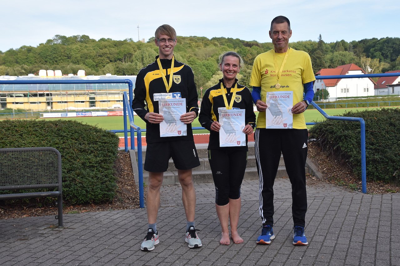 Am Ende des langen Wettkampftages standen noch die Landesmeisterschaften im 10000m-Lauf aus. Die 25 Runden lief Kathrin Rotter (W45) in 56:10,27min, Marco Nebelung (M35) in 39:41,90min und Jens Peter (M50) in 39:06,59min. Mit diesen starken Zeiten setzten sie sich auf Landesebene gegen die restlichen Läufer durch und sind jetzt alle drei Landesmeister im 10000m-Lauf. Jens Peter wird außerdem am nächsten Berlin Marathon mit über 40000 Startern aus aller Welt teilnehmen.