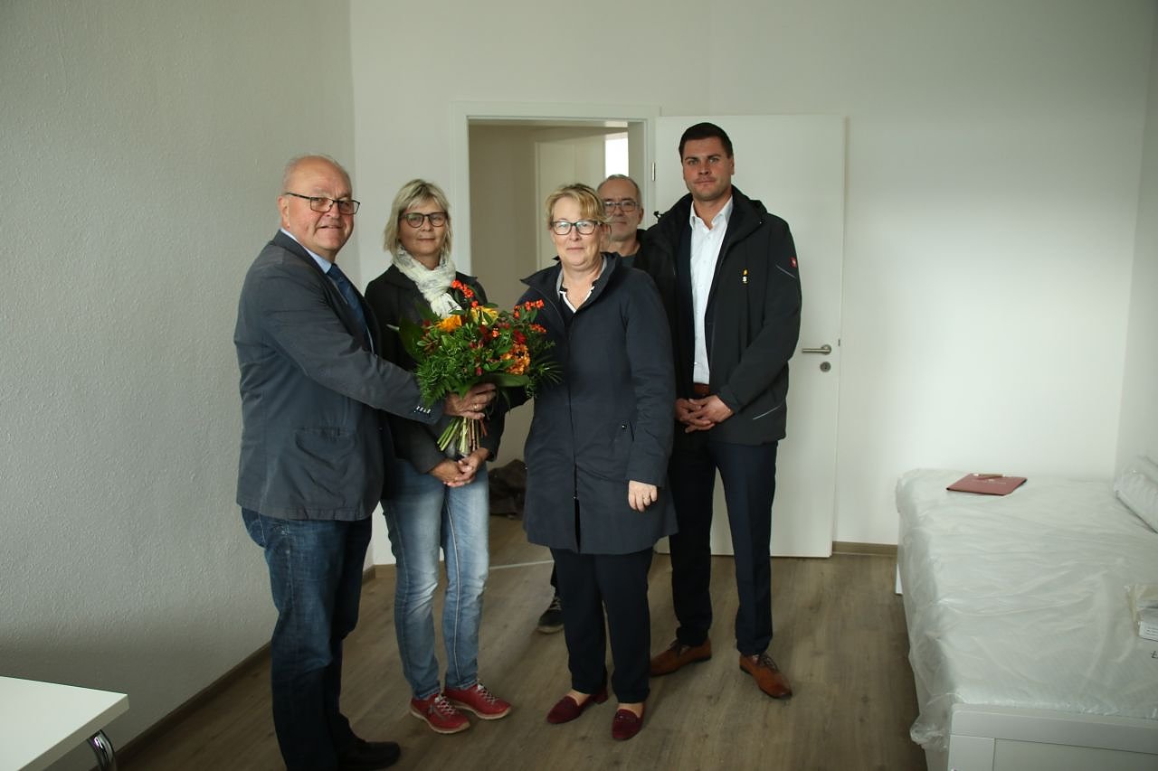 Ein gutes halbes Jahr später steht Schmidt-Röh in frisch eingerichteten Räumen in der Bochumer Straße 32. Nach rund sechs Jahren Leerstand hat die Städtische Wohnungbaugesellschaft im Akkord 22 neue Zimmer in fünf Wohnungen eingerichtet, die vom Studierendenwerk als Wohngemeinschaften an die Neuzugänge der Hochschule vermietet werden sollen. Die Raumgröße liegt zwischen 9,8 und 14 qm, die größeren Wohnungen für bis zu sechs Studenten verfügen über zwei Bäder, grundlegendes Mobiliar stellt das Studierendenwerk, die Küchen sind eingerichtet nur Balkon, Außenanlagen und Treppenhaus müssen bis zum Ende des Jahres noch fertiggestellt werden. Es gibt noch ein paar kleine Mängel zu beseitigen, die uns als Bauleuten auffallen, aber die von den Bewohnern nicht bemerkt werden würden., sagte SWG-Geschäftsführerin Inge Klaan. Geschuldet sei das vor allem der geschwinden Bauzeit. Da war viel Druck dabei und das war nicht immer fröhlich, so Klaan, dennoch sei man froh über die Zusammenarbeit mit dem Studierendenwerk und habe sich bei den beteiligten Firmen schon in der vergangenen Woche mit einem Frühstück bedankt.