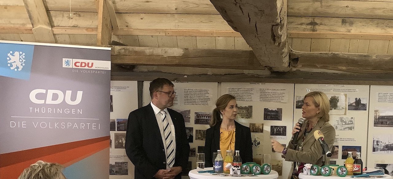 Die CDU-Kandidatin Carolin Gerbothe hatte nach Bleicherode in die Alte Kanzlei eingeladen und vor allem Handwerker wie Bäcker, Fleischer, Müller und Landwirte waren ihrem Ruf gefolgt. Das Thema war die Entwicklung im ländlichen Raum, Gerbothes Kernthema, bei dem sie als ausgebildete Landwirtin Kompetenz und Erfahrung in den Landtag einbringen will, so sie denn gewählt wird.