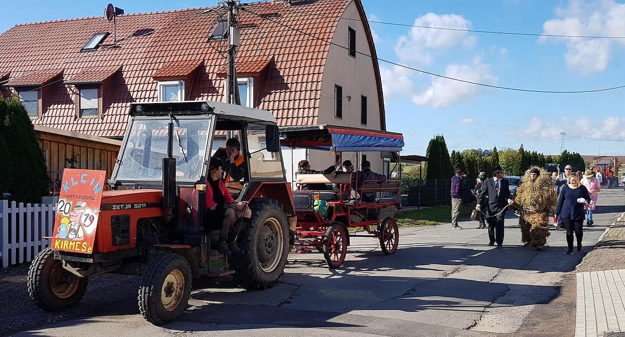 Am Samstag 6.00 Uhr in der Früh traf sich der Wickeltrupp und es wurden zwei Erbesbären ausgeputzt. Pünktlich 9.00 Uhr mit Trommel, Akkordeon und Orgelspiel startete dann der bunte Kirmesumzug. Alle Kirmesburschen ob jung oder alt hatten sich wieder toll kostümiert und wurden von den Einwohner sehnsüchtig erwartet.