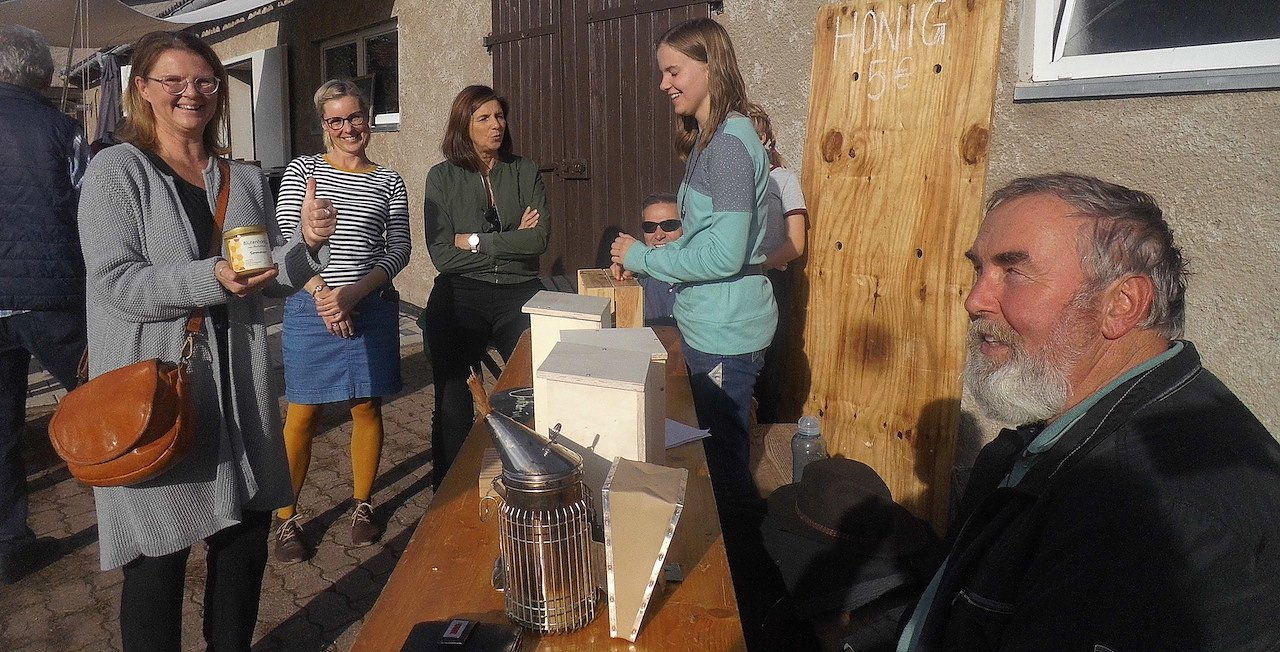Dann aber kam der Hammer, Talea 14 Jahre, alt ist bereits Bienenzüchterin. Sie und ihr Großvater wollen auch an diesem Tag mit ihrem Honigstand auf das Bienensterben aufmerksam machen und über das Leben der Bienen informieren.