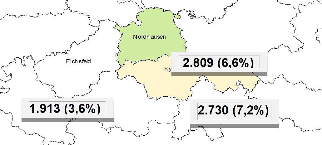 Im Landkreis Nordhausen waren rund 2.800 Frauen und Männer arbeitslos, 43 weniger als im letzten Jahr. Zum Vormonat sank die Zahl um 34. Die Arbeitslosenquote liegt bei 6,6 Prozent.