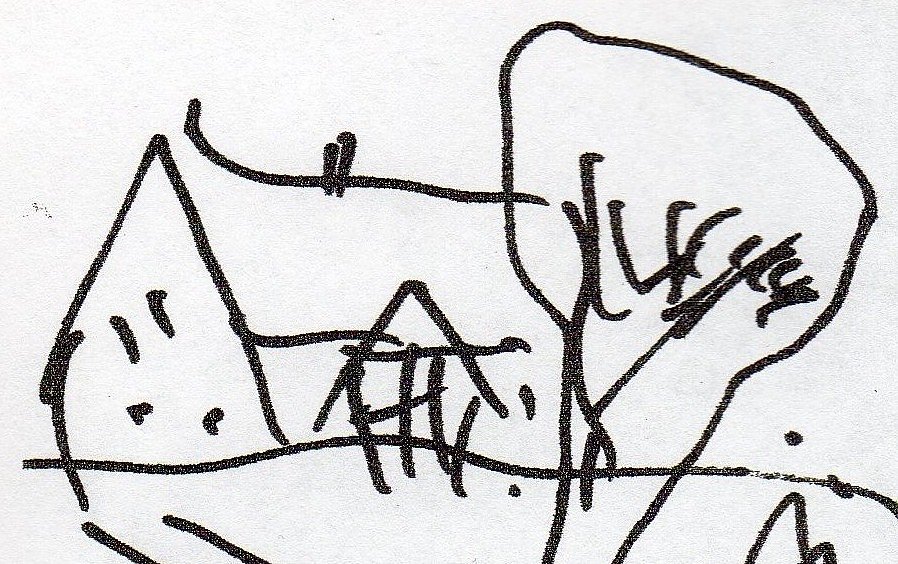 In der Bibliothek, die ausgeräumt werden musste, da ein weiterer Wasserschaden aus den oberen Etage durch einen Teil der Decke drang, ist eine Nutzung momentan nicht möglich. Aber - die Tür der Dichterstätte ist trotzdem geöffnet – um einzutreten. (Zeichnung von Gerd Mackensen im Gästebuch der Dichterstätte) geh und öffne die tür – diese Verszeile entstammt dem Gedicht die tür des tschechischen Poeten Miroslav Holub (*1928, †1998).