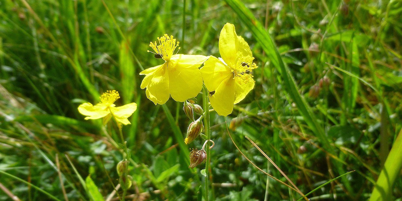 Die seltene Unterart des Gewöhnlichen Sonnenröschens (Helianthemum nummularium ssp. nummularium) kommt in Thüringen fast ausschließlich im Raum Südharz vor. Die Mitglieder und Freunde des BUND-Kreisverbandes Nordhausen tragen mit dazu bei, diese floristische Besonderheit zu erhalten. Die Aufnahme entstand am 6.7.2014 im Raum Ilfeld.