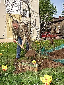 Nordhausen (nnz). Abschied nehmen fällt immer schwer. Reiner Kirsch, dem langjährigen Leiter des Umweltamtes, wurde der Abschied aus dem Rathaus heute ein wenig leichter gemacht. Er durfte einen grünen Punkt in die Stadt setzen. Die nnz war dabei.Reiner Kirsch, langjähriger Umweltamtsleiter, geht in den Vorruhestand. Eigentlich nichts Besonderes, wenn die Bedingungen dafür erfüllt sind. Besonders ist aber, dass er nicht nur Geschenke erhält, sondern auch der Stadt Nordhausen ein Geschenk zum Abschied macht. Er pflanzte heute an der Stolberger Straße/ Richard-Wagner-Straße eine grünblättrige Hänge-Buche.