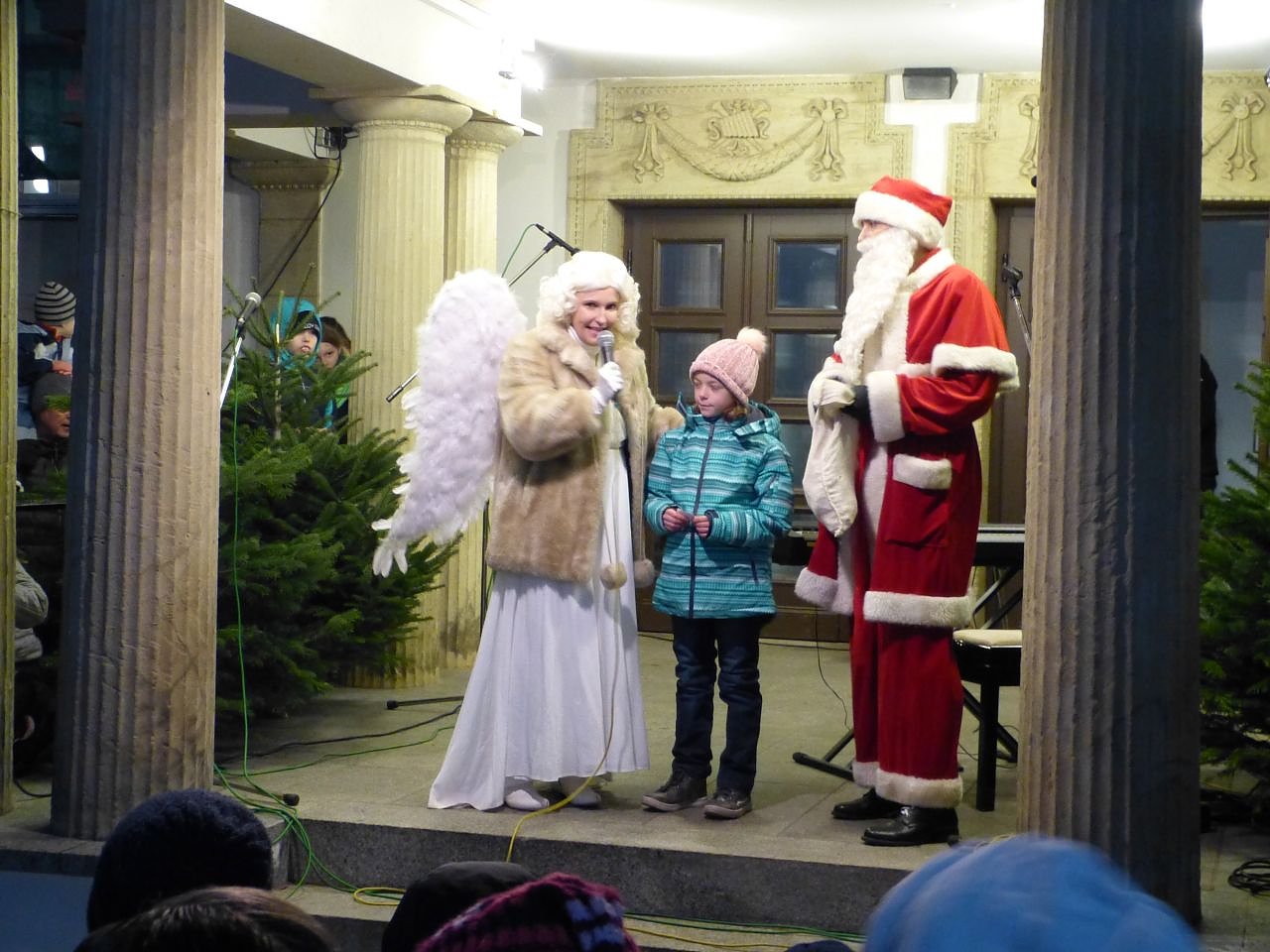 Deswegen lugte aus dem Fenster die kleine Cinderella aus dem gleichnamigen Ballett hervor, welches das nächste Mal am 14.12. im Theater Nordhausen gespielt wird und der Engel befragte Groß und Klein nach Ihrem Hintergrundwissen zum Theater (Jaaa, 102 Jahre alt, 488 Plätze groß und trotzdem noch sehr vital!) Die Märchen-Omi las, passend zum Auftritt des Weihnachtsmannes, eine Geschichte vor.