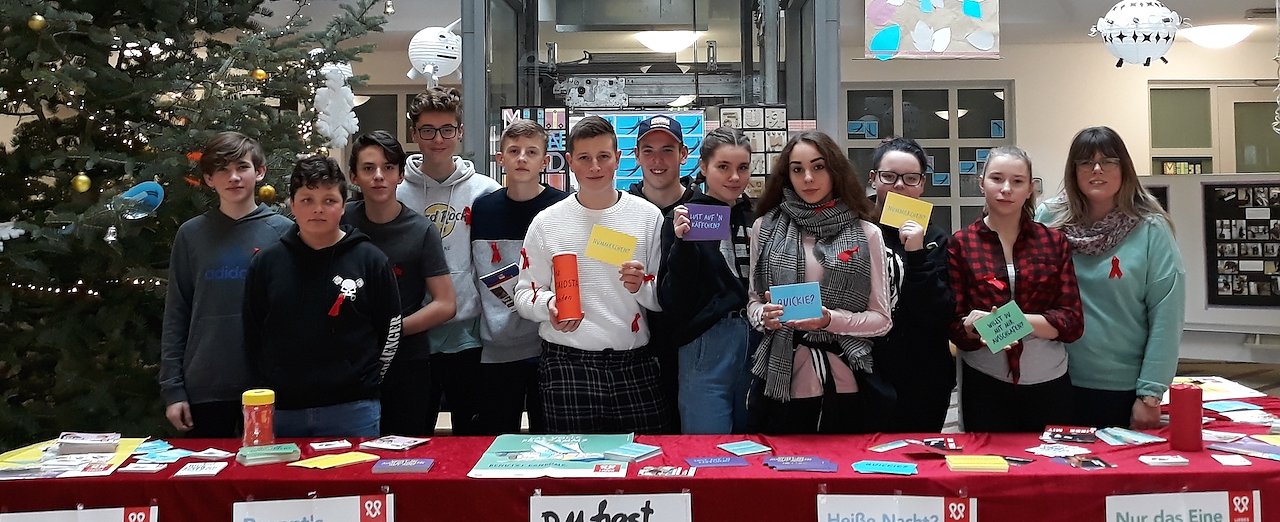 Die HIV-Beraterin des Gesundheitsamtes Nordhausen Kathrin Wolff organisierte in Zusammenarbeit mit den Regelschulen in Wolkramshausen und Bleicherode, mit der Petersbergschule in Nordhausen, dem Schiller-Gymnasium Bleicherode sowie dem Berufsbildungszentrum Nordhausen Spendenaktionen. Mit umfangreichen Material haben die Schüler informiert und aufgeklärt. Aidsschleifen, Kondome und diverse Give-Aways konnten gegen eine kleine Spende erworben werden. Es wurden außerdem selbst gefertigte Artikel für die Weihnachtszeit verkauft sowie Kuchenbasare veranstaltet, um weitere Spenden zu erhalten.