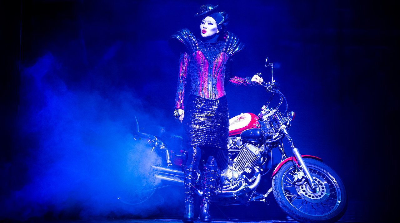 Und so gebührt der Ausstatterin dieser Zauberflöte-Inszenierung, Birte Wallbaum, für ihr grandioses Bühnenbild, die phantastischen Kostüme und vor allem die umwerfenden Masken ein dickes Extralob. Julia Lormis veredelt diese in sich geschlossene Ästhetik zwischen Weltuntergang und Weltenhoffnung im Tempel von Isis und Osiris mit ihren tollen Filmprojektionen. Da wurde an jedes Detail gedacht, jede Haarlocke präsentiert sich voll Stolz und Würde, jede Kostümnaht sitzt genau da, wo sie das Regieteam haben wollte. Spätestens wenn die Königin der Nacht ((SuJin Bae), sexy in Lack und Leder gewandet von ihrer beeindruckenden, chromblitzenden Yamaha Virago steigt und die Wahnsinns-Koloraturen ihrer berühmten Arie scheinbar mühelos in den Saal trällert, ist der Zuschauer in den Bann dieser Aufführung geschlagen.