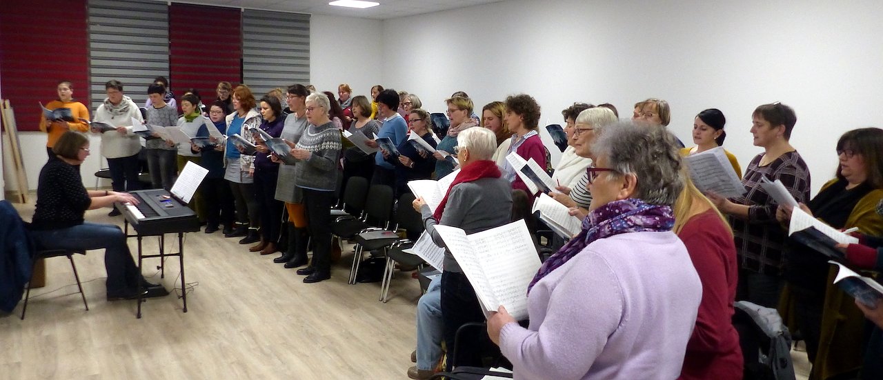 2020 ist der Chor dann noch einmal rasant gewachsen – er verdoppelte sich. Viola Kremzow meldete noch am Abend der ersten Probe in Ilfeld begeistert: Von den 50 angemeldeten Frauen kamen 61 und rund 10 hatten sich entschuldigt. Mittlerweile haben sich die Frauen aller Generationen in schöner ökumenischer Gemeinschaft bereits drei Mal zu Proben getroffen. Dafür wechselte man in Görsbach und Wipperdorf, dank der spontanen Hilfe der Bürgermeister, von den kirchlichen Gemeinderäumen in die größeren Dorfgemeinschaftshäuser. Nur die letzte Probe am Freitag kann im St. Jakob-Haus in Nordhausen bleiben, dort ist Raum genug.