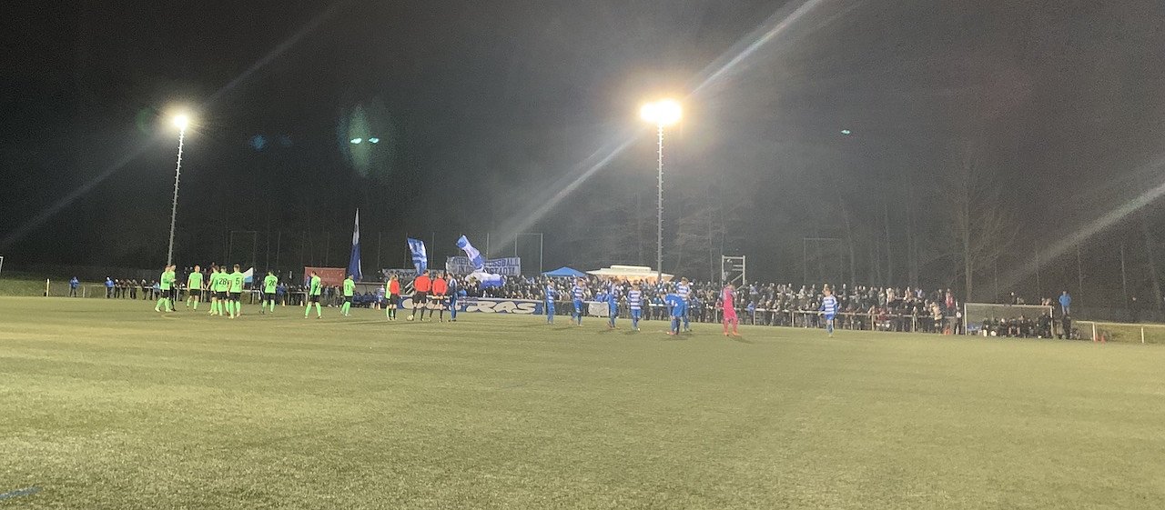 Der Zuschauerstrom zum Kunstrasenplatz ist momentan noch recht überschaubar. Die Mannschaften haben das Aufwärmprogramm beendet und sind noch einmal in die Kabinen gegangen. In zehn Minuten soll es hier losgehen.