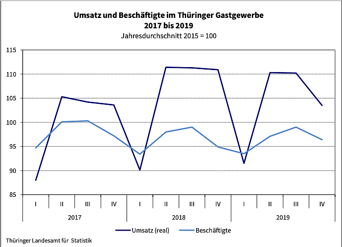 Umsatz und Beschäftigte im Thüringer Gastgewerbe 2017 bis 2019 (Foto: Thüringer Landesamt für Statistik)