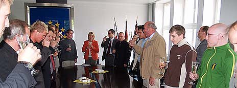 Im Gespräch mit der Oberbürgermeisterin erläuterte Wacker-Präsident Hans-Peter Kell, dass ein Erfolgsgarant das Vertrauen auf den eigenen Nachwuchs sei. Für die jungen Leute sei es ebenso eine Ehre, hier ins Rathaus eingeladen zu werden, wie es ihnen Spaß mache, für Wacker Nordhausen zu spielen. Wir brauchen keine Legionäre, die nur des Geldes wegen in Nordhausen spielen. Wir brauchen Sportler, die sich mit dem Verein und mit der Region verbunden fühlen.