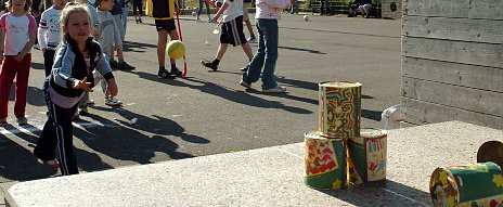 Alle Schüler der Grund- und Regelschule Ost feierten heute gemeinsam ein Sportfest. Es gab jede Menge Spiel und Spaß für alle, unter anderem mit Dosenwerfen, Sackhüpfen, Torwandschießen und Fußball. Die Grundschüler mußten allerdings auch Leistungen erbringen. Ihre Ergebnisse im 50 Meter Lauf, beim Werfen und beim Weitsprung gehen in die Wertung zur Sportnote ein. Morgen wird die Festwoche fortgesetzt, unter anderem mit einer Aktion zum sicheren Verhalten auf dem Fahrrad.