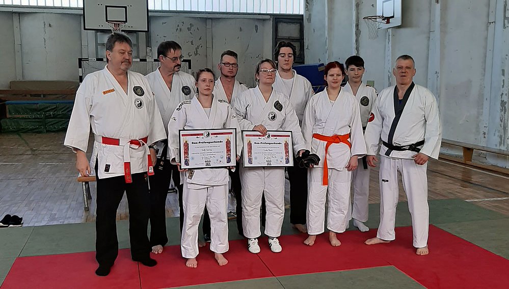 Den schweren Kampfkunstprüfungen stellten sich zum 1. Dan, Linda Bank von der KKS Artern e.V. und zum 2. Dan, Steffi Georgy von der Sport und Kampfkunstakademie Nordhausen e.V..