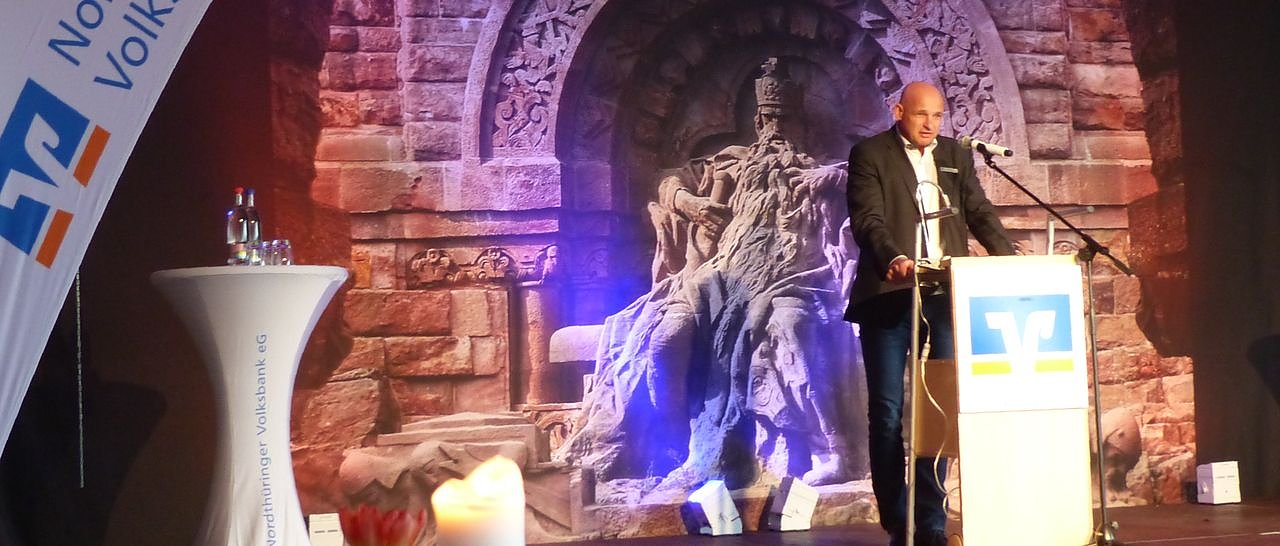Volksbank-Vorstand Peter Herbst begrüßt die Gäste (Foto: nnz)