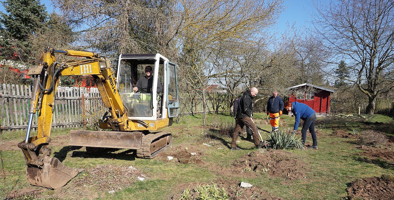 In dieser Woche haben die ersten Arbeiten rund um die Niedersachswerfer Kindertagesstätte Wirbelwind begonnen. Die Bauhofmitarbeiter bereiten gegenwärtig die beiden angrenzenden Kleingärten, die die Kommune Harztor gekauft hatte, als neue Parkfläche vor. Ein Teil der Gärten wird zudem als Spielfläche für die Kinder hergerichtet, eine Holzhütte wird erhalten...