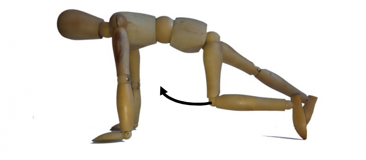 Ausgangslage ist der Liegestütz. Im Wechsel werden die Knie bis zur Brust gezogen.