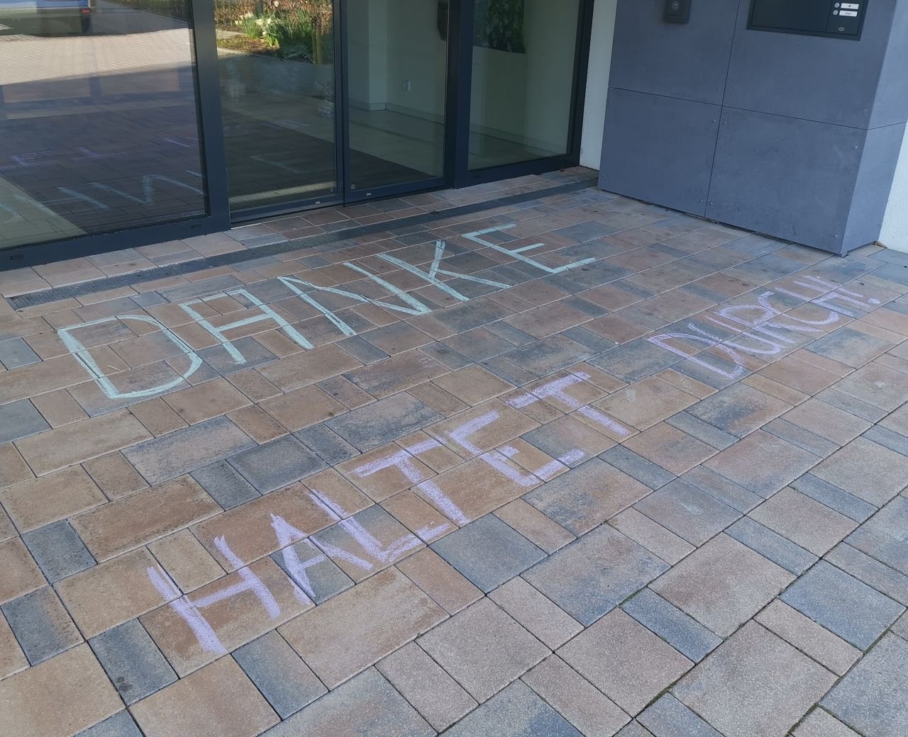 Aber auch die Angehörigen unserer Bewohner versuchen, ihren Liebsten mit kleinen Botschaften und Präsenten die Zeit so erträglich wie möglich zu gestalten. Und nicht nur für unsere Bewohner sind sie da, auch an die Mitarbeiter des Hauses wird regelmäßig gedacht. Wir freuen uns sehr über die Blumengrüße, liebevollen Durchhaltebotschaften, Danksagungen und Leckereien!