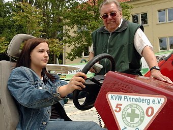 Annett Sofke testet am Autoreaktionsgerät wie schnell sie auf die Bremse tritt. Phantastische Reaktionszeiten bescheinigt ihr Moderator Helmut Weinrich. Er ist mit diesem Simulator aus Pinneberg an die Fachhochschule Nordhausen gekommen. Auch der Überschlagsimulator und der Gurtschlitten wurden von Annett und ihren Freundinnen gestestet. Richtig gut und sinnvoll finden die Studentinnen die Aktion der Kreisverkehrswacht. Im Überschlagsimulator waren sie auf den drohenden Unfall gedanklich vorbereitet, im richtigen Straßenverkehr ist das nicht möglich. Jetzt wissen wir, wo wir uns abstützen müssen, um uns nicht unnötig weh zu tun und wie wir aus dem ungestürzten Auto herausklettern können. Die jungen Frauen finden es hilfreich, daß so was angeboten wird. An einem Sicherheitstraining würden sie auch gern teilnehmen, wenn’s nicht so teuer wäre. Zum ersten Mal ist der Aktionstag für Junge Fahrer an der Bildungseinrichtung. Nach der großartigen Resonanz bei den Studenten, ist Projektleiter Dieter Köhler zuversichtlich, aus der einmaligen Aktion eine Tradition zu machen. Die gemeinsam mit der Polizei und dem DRK durchgeführte Veranstaltung wurde von zahlreichen Studenten besucht, die neben den Unfallsimulationen auch an einem Verkehrsquiz teilnehmen, etwas über Erste Hilfe sowie Alkohol- und Drogentests erfahren konnten.