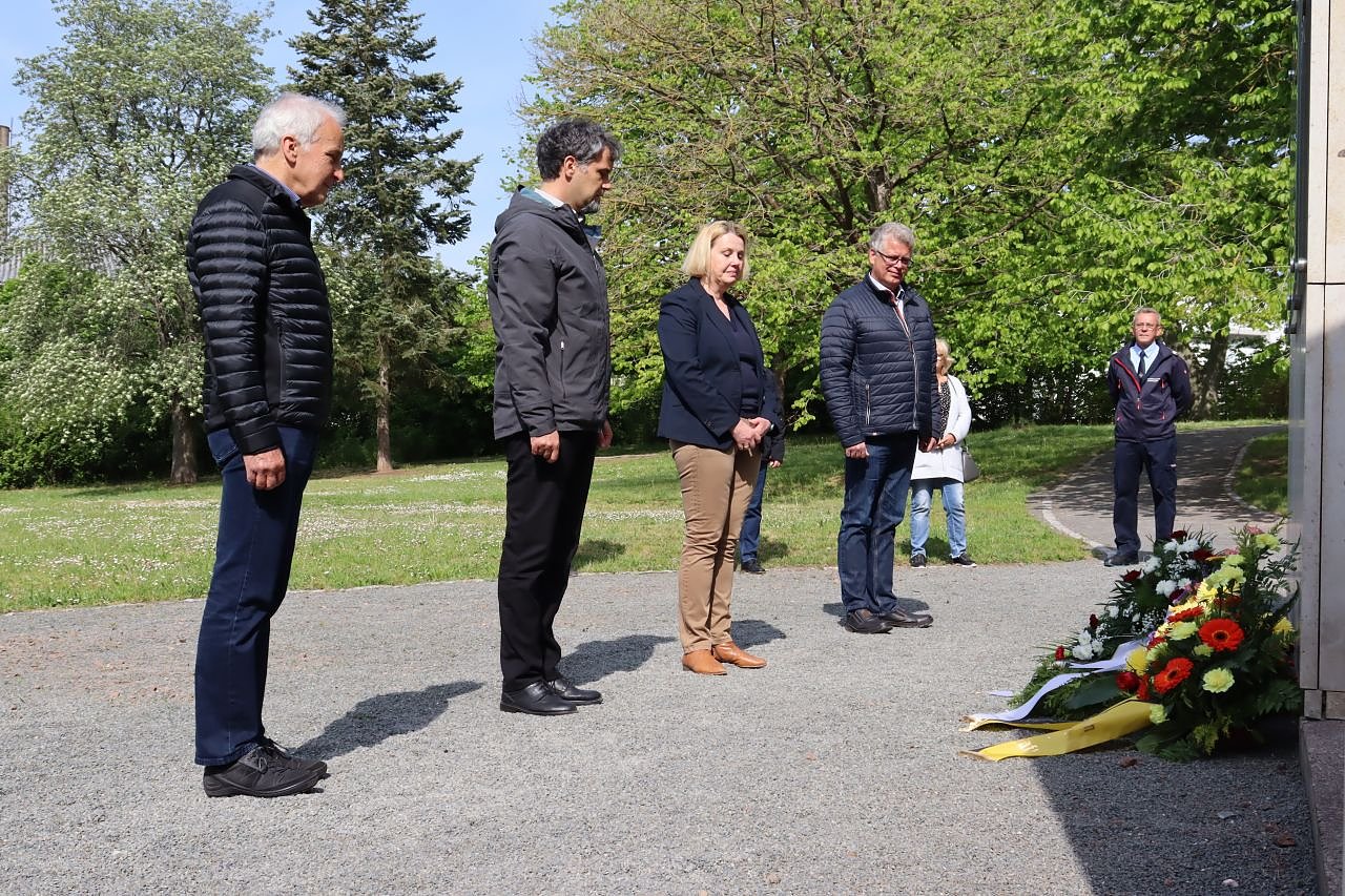 Mit einem stillen Gedenken zum Ende des Zweiten Weltkrieges und der Befreiung vom Nationalsozialismus gedachte heute Oberbürgermeister Kai Buchmann, Bürgermeisterin Jutta Krauth und die ehrenamtlichen Beigeordneten auf dem Ehrenfriedhof der Stadt Nordhausen...