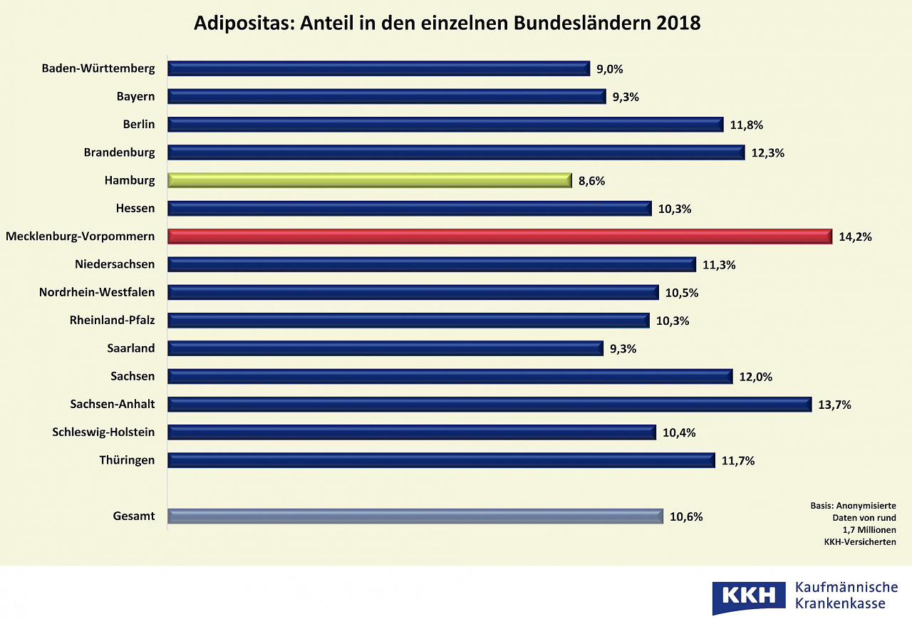 Adipositas Anteil nach Bundesländern (Foto: Kaufmännische Krankenkasse KKH) Adipositas Anteil nach Bundesländern (Foto: Kaufmännische Krankenkasse KKH)