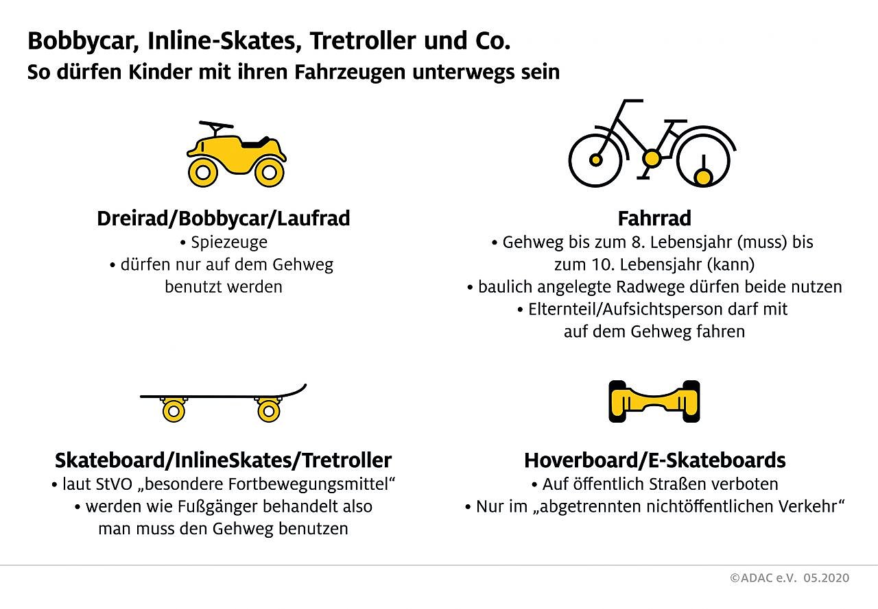 Kinder können und wollen heute schon mobil sein. Doch wo sie in welchem Alter und vor allem mit welchen Fahrzeugen unterwegs sein dürfen, ist nicht immer bekannt. Um sicherzugehen, dass nur in einem angemessenen und sicheren Verkehrsbereich gefahren wird, hat der ADAC zusammengestellt, welche Kindergefährte wo unterwegs sein dürfen...