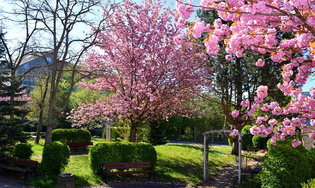 Der Maibaum ist am 30.04. aufgestellt worden, zur Verköstigung gab es Würstchen vom Grill, Kartoffelsalat und Maibowle. Drei Zierkirschen im Garten zeigten sich leuchtend rosa und wehten nach 2 Wochen zu einem rosa Teppich auf den Gehwegen. Ein Gottesdienst wurde im Garten von Alpers von Biela, Matthias Weicker und der sozialen Betreuung organisiert, an dem sich nicht nur die Heimbewohner erfreuten, sondern die ganze Umgebung.