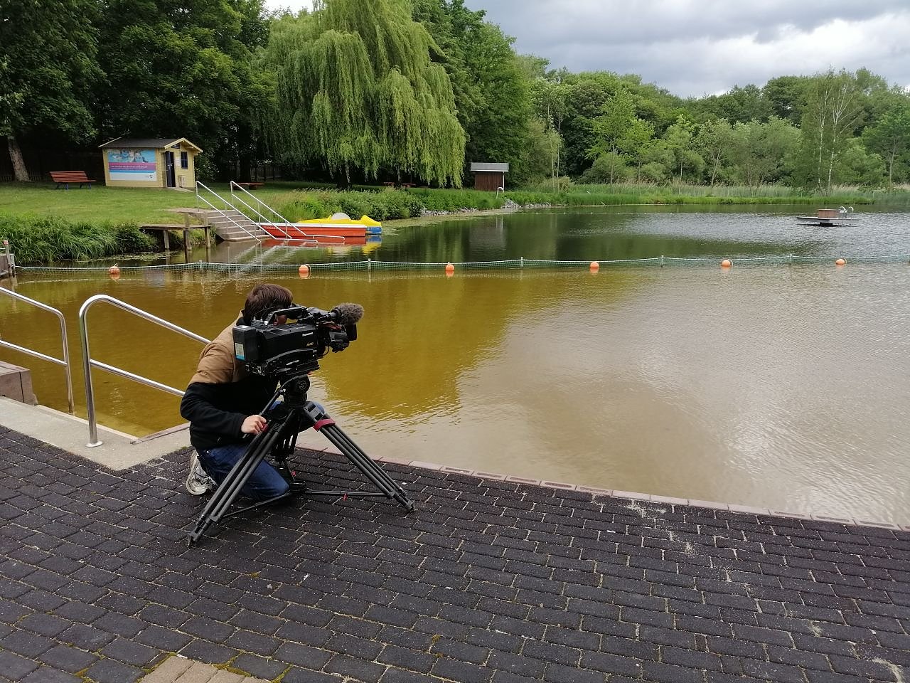 Zum Abschluss des Eröffnungstages konnten auch Gäste aus der Landeshauptstadt begrüßt werden. Das Wettermobil des Thüringen Journal vom MDR machte Station und präsentierte das Thüringer Wetter aus dem nördlichsten Naturbad des Freistaates.