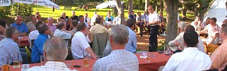 Im Hinblick auf das CDU-Wahlprogramm, das am 11. Juli vorgelegt werden soll, umriß der Bundespolitiker erste Eckdaten. Das betrifft ein höheres Renteneintrittsalter, eine Aufweichung des bestehenden Kündigungsschutzes sowie ein Konzept zur Beschäftigung von Langzeitarbeitslosen.