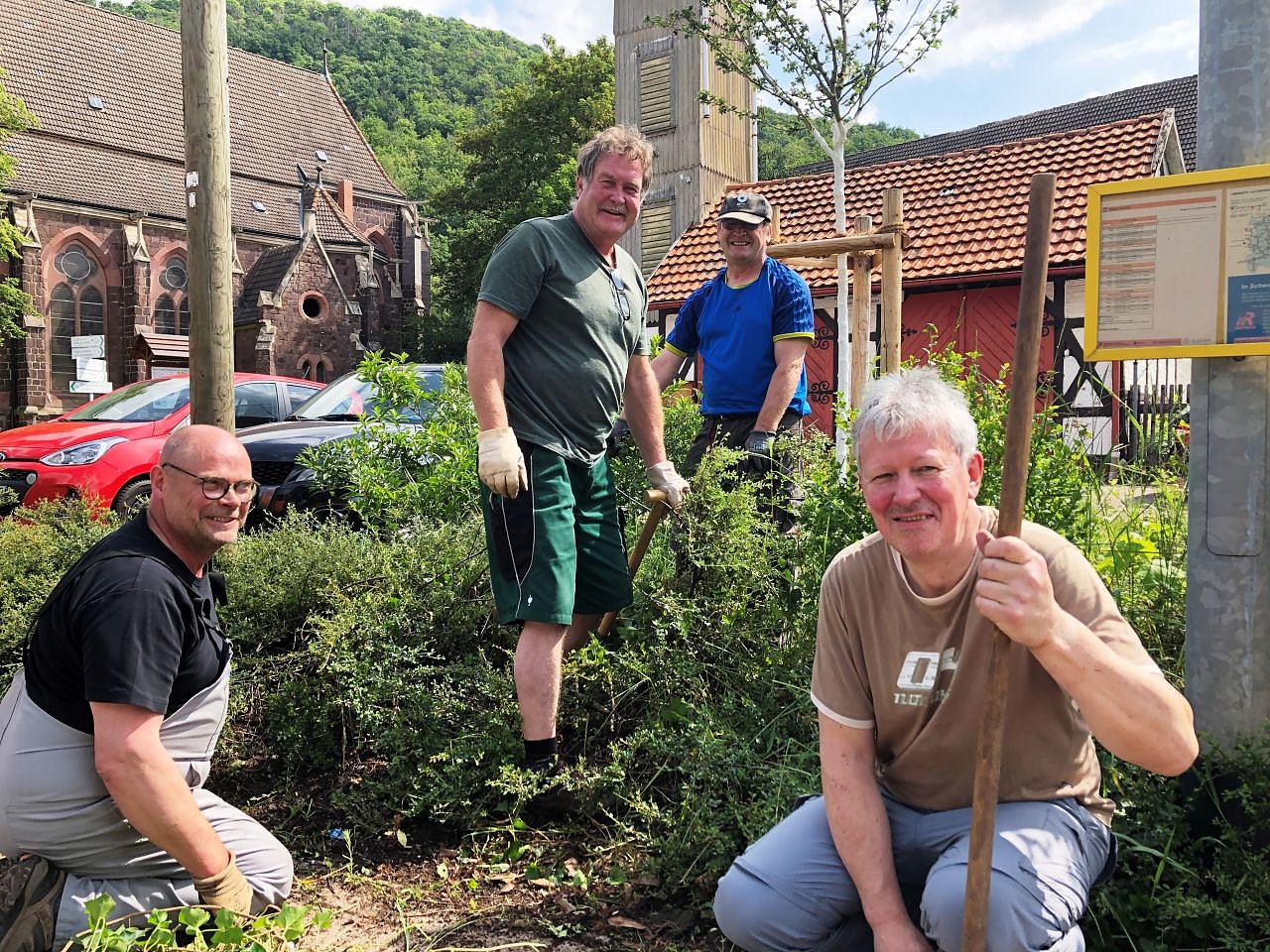 Haben sie aber nicht. Stattdessen stiegen Erwin Fessel, Michael Müller, Frank Nebelung und Gerd Kleemann (v.l.n.r.) in ihre Arbeitsklamotten, holten Werkzeug und packten gemeinsam tatkräftig mit an. Die Männer räumten rund um die Bushaltestelle der Harzbuslinie Nummer 23 auf und beräumten diese von Wildwuchs, Unkraut, Gestrüpp und Müll.