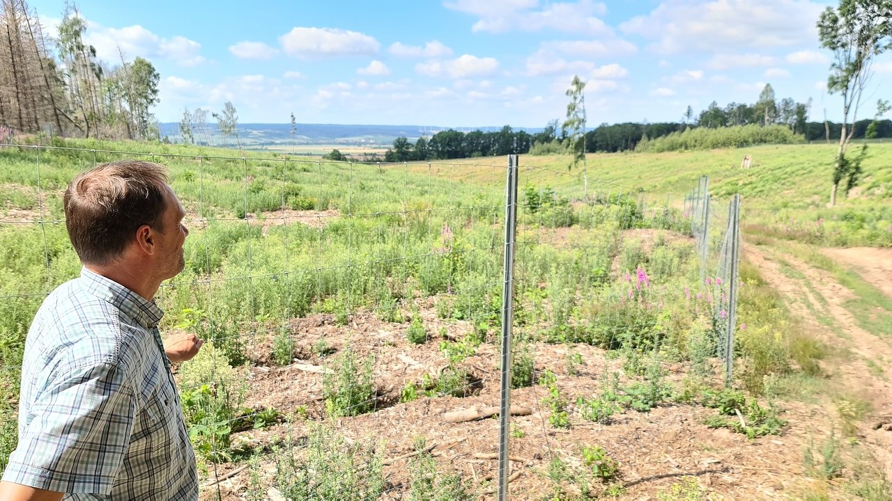 Lars-Kristian Kothe vor einer Aufforstungsfläche am Reesberg (Foto: nnz)