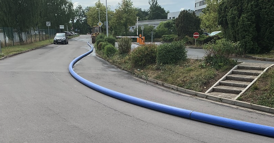 Kurzfristig wurde daraufhin entschieden, den nördlichen Bereich der Ringwasserleitung sowie die Hauptanschlussleitung, kommend von der Übergabestelle an der Wendeschleife der Straßenbahn, zu erneuern. In einer ersten Etappe wurden rund 300 Meter Leitung erneuert. Die Geschäftsleitung und Gunther Hebestreit, der für die Projektsteuerung verantwortlich zeichnet, entschlossen sich, die neuen Leitungen in einem Bohrverfahren zu verlegen. Dazu wird sich der Technologie der Firma Watterodt Bohrtechnik GmbH bedient.