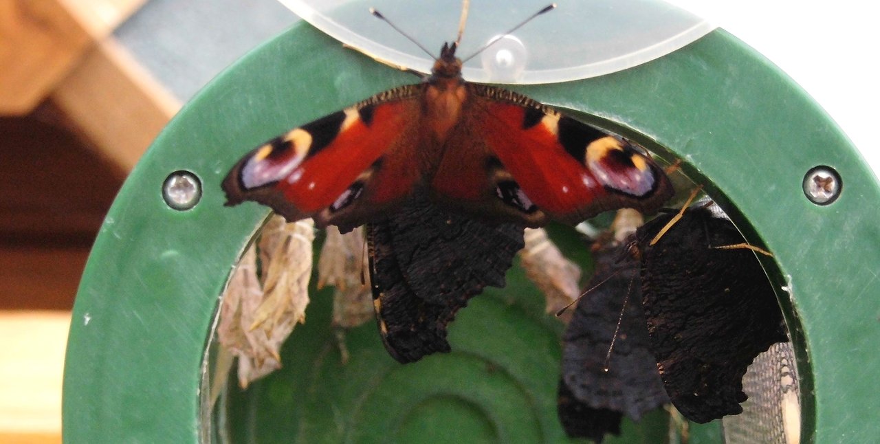 Der kleine Biologe hat dann das Kästchen geöffnet und so konnten an die zehn Tagpfauenaugen das Licht der Welt in der Goldenen Aue, erblicken. Sehr groß war die Freude bei den kleinen Mann.