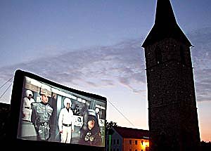 Als Treffer hat sich am Wochenende das 1. Sommerkino auf dem Petersberg erwiesen. Knapp 1000 Besucher insgesamt sind am Freitag, Sonnabend und Sonntag auf das frühere Gelände der LGS gekommen, wo unter freiem Himmel die Riesenleinwand aufgebaut war. Mit Zigarre in der einen- und einem Glas kühler Bowle in der anderen Hand – so hatten viele Zuschauer die sommerlich-entspannte Atmosphäre. Unser größtes Glück war, dass das Wetter mitgespielt hat, so Landesgartenschau-Geschäftsführer Matthias Jendricke. Top-Film des Kino-Wochenendes war das Drama Barfuss: Allein am Sonntag waren 450 Besucher gekommen, um das Drama von und mit Regisseur und Hauptdarsteller Til Schweiger zu erleben. Am Sonnabend gab es die Komödie Spaceballs zu sehen und am Freitag den Film-Klassiker Blutige Erdbeeren. Beim Sommerkino 2005 soll es nicht bleiben. Jendricke: Wir werden eine Tradition begründen und diese Freiluftveranstaltung künftig jedes Jahr anbieten.