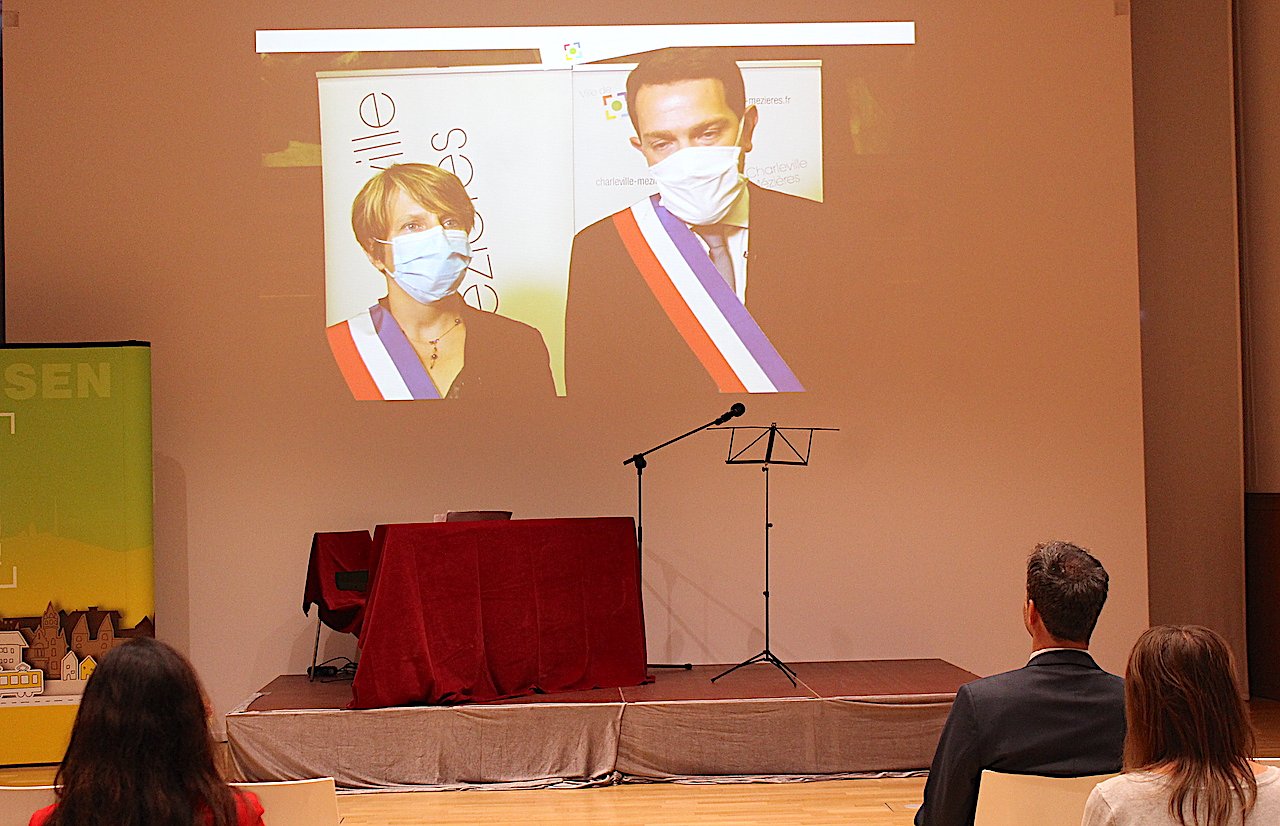In seiner Videobotschaft bedauerte Boris Ravignon, Oberbürgermeister von Charleville-Meziere, in perfektem Deutsch, nicht persönlich zur Ausstellungseröffnung in Nordhausen weilen zu können und beglückwünschte die Nordhäuser zum Tag der Deutschen Einheit. Er erinnerte an den Gerde verstorbenen Ex-Bürgermeister Peter heiter und würdigte ihn als wichtigen Wegbereiter der Städtepartnerschaft zwischen den beiden Kommunen. Abschließend wünschte er den Nordhäuser Bürgern viel Spaß und und schloss sein Statement mit den Worten Genießen Sie die Ausstellung!