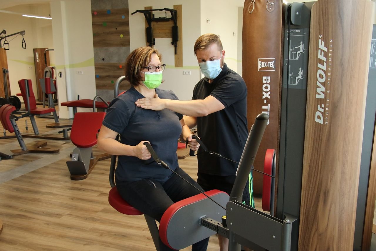 Zurück zur körperlichen Mitte: Yvonne Reichhardt und Sebastian Allner an den neuen Geräten (Foto: agl)