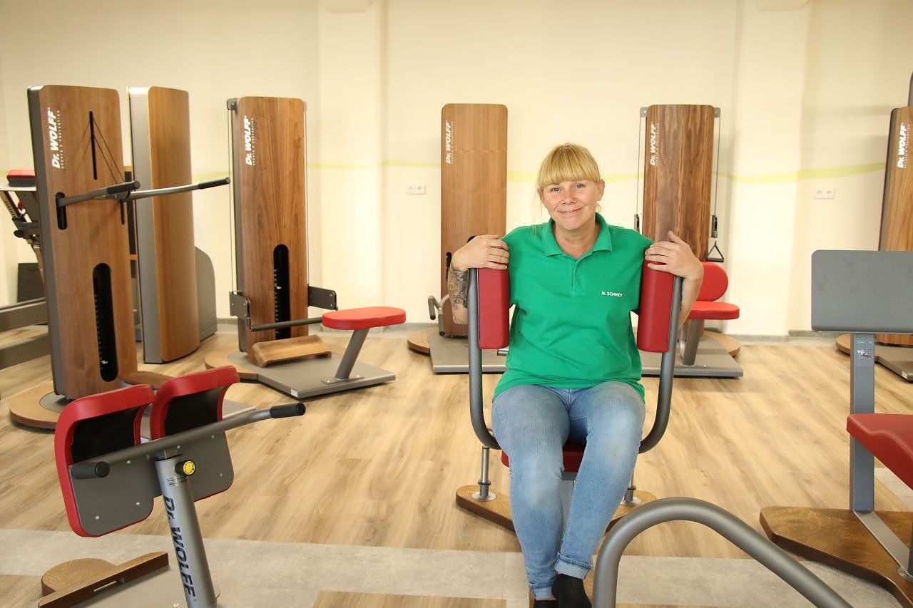 Zum Tag der offenen Tür in der kommenden Woche will die Praxis dem interessierten Publikum deswegen auch neu angeschaffte Geräte präsentieren, die speziell auf die Rückenschulung hin ausgelegt sind. Yvonne Reichhardt hat das Rücken-Kompetenz-Zentrum nach Dr. Wolff schon ausprobieren können, unter der Anleitung der Kollegen versteht sich. Am liebsten sind ihr die Faszien-Rollen, die das Faser-Gewebe rund um Muskeln und Organe lockern sollen. Doch damit allein ist es nicht getan, rund 16 Wochen dauert das Training in vier distinkten Phasen und an verschiedenen Geräten. Am Anfang geht es erst einmal um das Körpergefühl, darum den eigenen Mittelpunkt zu finden, der dem Körper Stabilität verleiht und das lernen normaler Bewegungsabläufe. Im Alltagssport wird da oft nicht viel Wert drauf gelegt. Wer etwa einseitig nur nach oben trainiert, der mag zwar sportlich sein, vernachlässigt aber oft die Basis, erzählt Reichhardt. Gewichte und der Aufbau der Tiefenmuskulatur kommen erst im zweiten Schritt dazu, in Phase drei wird die mechanische Hilfe zurückgefahren, es geht mehr um den eigenen Körpereinsatz und in der finalen Phase steht funktionelles Training für den Alltag auf dem Plan, wobei die Therapeuten über den gesamten Zeitraum hinweg individuelle Hausaufgaben verteilen.