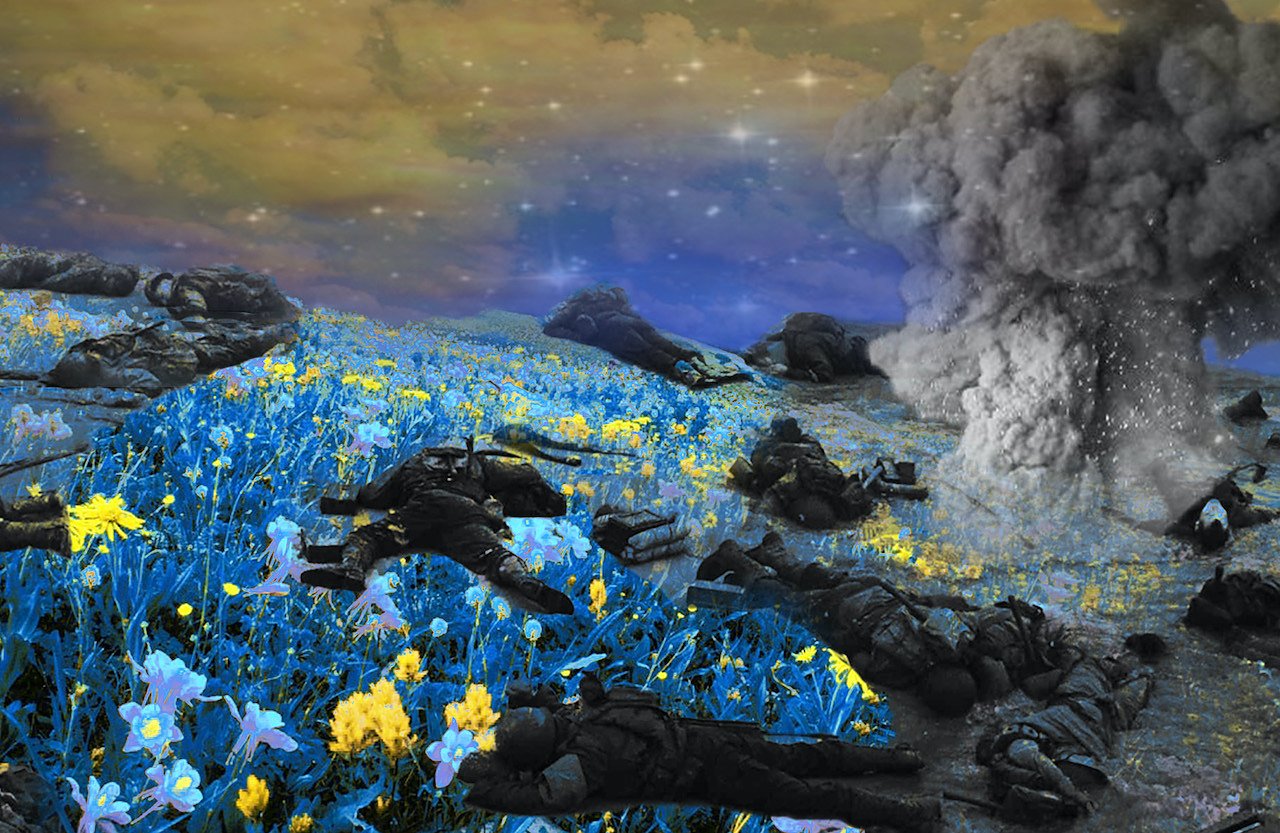Dazu zeigen digital erstellte, eindrucksvolle Bildcollagen der Weimarer Künstlerin Franziska Becher synchron die widersprüchliche Entwicklung der heutigen Welt in ihrem ganzen Schrecken auf: Bilder von der Zerstörung dieser Harmonia Mundi durch die entfesselten, destruktiven Kräfte des Menschen, verstörende Assoziationen zu Umweltzerstörung und Krieg, rütteln auf und zwingen uns zum Nachdenken: Wie können wir alle in unserem täglichen Leben dazu beitragen, dass die Menschheit den eingeschlagenen Weg in eine drohende Katastrophe wieder verlässt? Ziel ist es jene wundervolle, bunte und geschichtenreiche Kultur nicht in Vergessenheit geraten zu lassen.