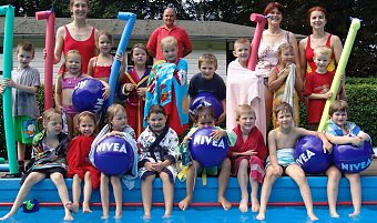 Trotz der guten Stimmung und Begeisterung im Kindergarten waren alle Beteiligten froh, als die Sonne doch noch ein Einsehen hatte. Rasch wurden alle Badesachen zusammengesucht und ab ging es ins Waldbad. Hier konnten die Kinder sich im Wasser richtig austoben, mit den beliebten Poolnudeln spielen und Tauchen üben. Riesenspaß machte es den jungen Hüpfern auch, mit kräftig spritzenden Sprüngen auf das Wasser zu platschen. Als alle reichlich zufrieden und wieder abgetrocknet waren, spendierte eine Mutti als Abschluss noch Eis für alle kleinen Wasserfrösche und großen Lebensretter.