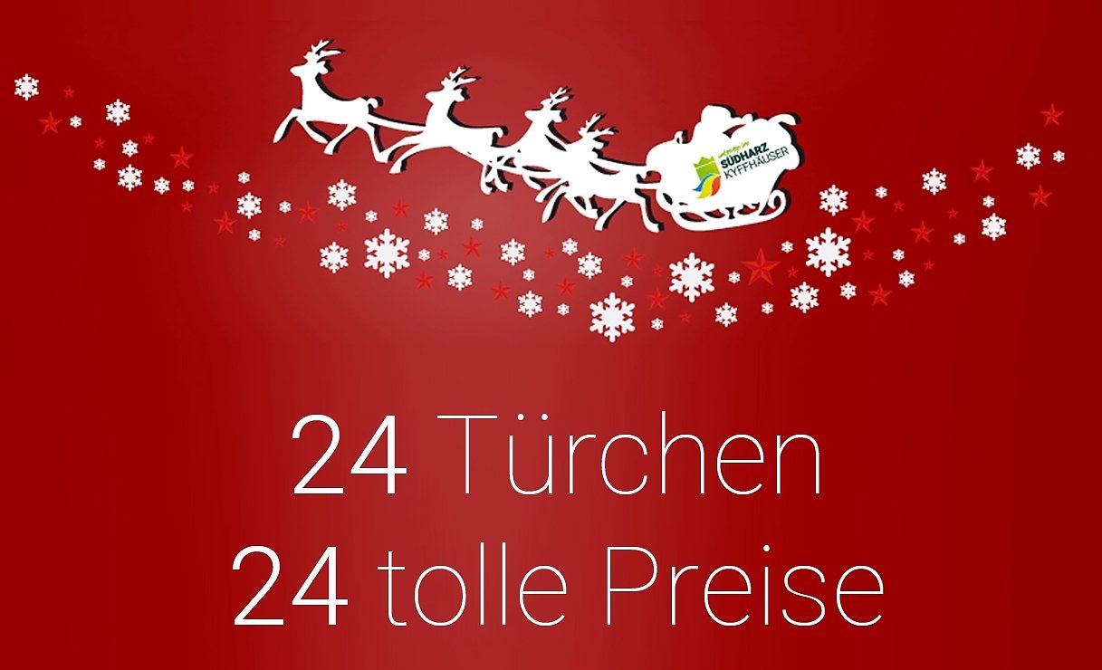 Jeden Morgen öffnet der Tourismusverband auf seiner Facebook-Seite Südharz Kyffhäuser entdecken ein virtuelles Türchen mit einer Gewinnfrage zur Region. Unter allen, die die richtige Antwort unter dem Beitrag kommentieren, wird tagesaktuell ein Preis verlost. Die Gewinner werden persönlich benachrichtigt und erhalten ihren Preis per Post. Die Teilnahmebedingungen sind unter www.region-suedharz-kyffhaeuser.de abrufbar.