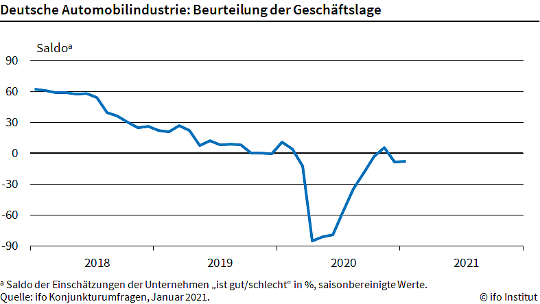 Die Erwartungen stiegen geringfügig auf plus 11,6 Punkte, nach plus 11,2 Punkten im Dezember. Die Autobauer sind vorsichtig optimistisch, dass die Nachfrage nach dem Lockdown wieder anziehen wird. Auch dafür werden gegenwärtig die Lager wieder gefüllt, sagt Klaus Wohlrabe, Leiter der ifo-Umfragen.