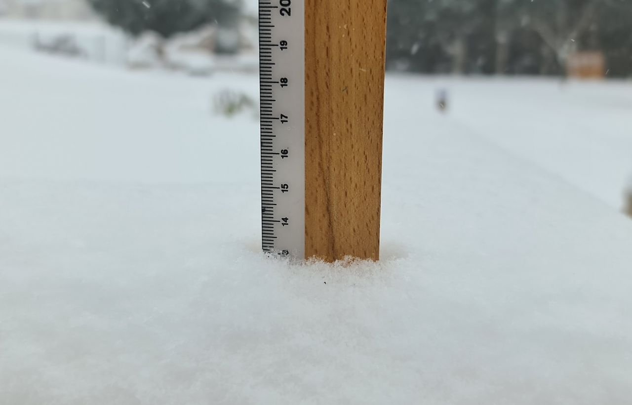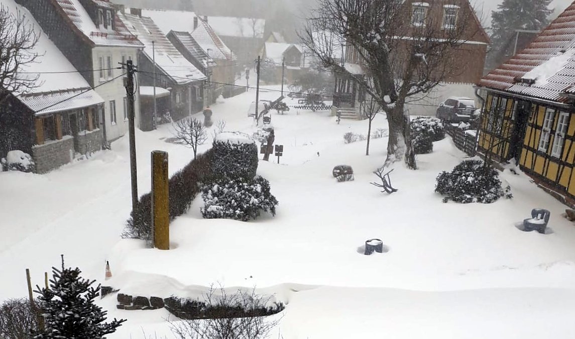 Robin K. aus Salza hatte am Morgen mal kurz die Schneehöhe gemessen. Kurz nach 8 Uhr waren es knapp 14 Zentimeter in einer geschützten Lage. Inzwischen dürften da wohl schon drei bis vier Zentimeter mehr dazugekommen sein.