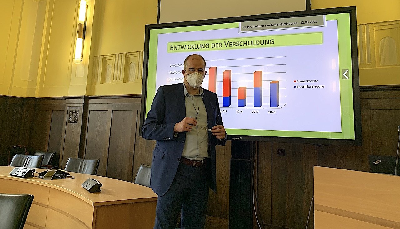 Autor: oschDie richtig frohe Botschaft vorab: keine Kommune des Landkreises oder andere geschäftliche Verwaltung hat nach bisherigen Erkenntnisse durch die Pleite der Bremer Greensill-Bank Geld verloren. Zweite gute Kunde, die der Landrat verkündete: Das Nordhäuser Landratsamt und das Landesverwaltungsamt in Weimar gehen davon aus, den Landkreis Ende 2024 aus der Haushaltskonsolidierung entlassen zu können. Kehrseite der Medaille ist, dass es dann keine Bedarfszuweisungen vom Freistaat mehr geben und die Lage finanziell schwieriger wird, aber dann von Altschulden befreit. Bedarfszuweisungen beziehen momentan von den 17 Kreises und sechs kreisfreien Städten des Freistaats nur der Unstrut-Hainich-Kreis und der Lsandkreis Nordhausen. Diese Phase müsse ausgenutzt werden, um möglichst viel nachzubessern, was zwanzig Jahre lang nicht bearbeitet wurde, befand der Verwaltungschef im Gespräch.