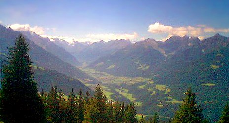 Trotzdem starteten wir pünktlich gegen 9.30 Uhr. Bereits die ersten 10 km zeigten uns wo wir sind. Von Igls (903 m) ging es steil bergauf zur Patscher Alm in 1.743 m Höhe. Die gelegentlich aufgestellten Wegweiser Mountain Bike Weg - schwere Route motivierten uns zusätzlich. Wenn schon Alpen, dann auch schwer. Von der Patscher Alm hat man dann aber einen wunderschönen Blick über das Stubeital.