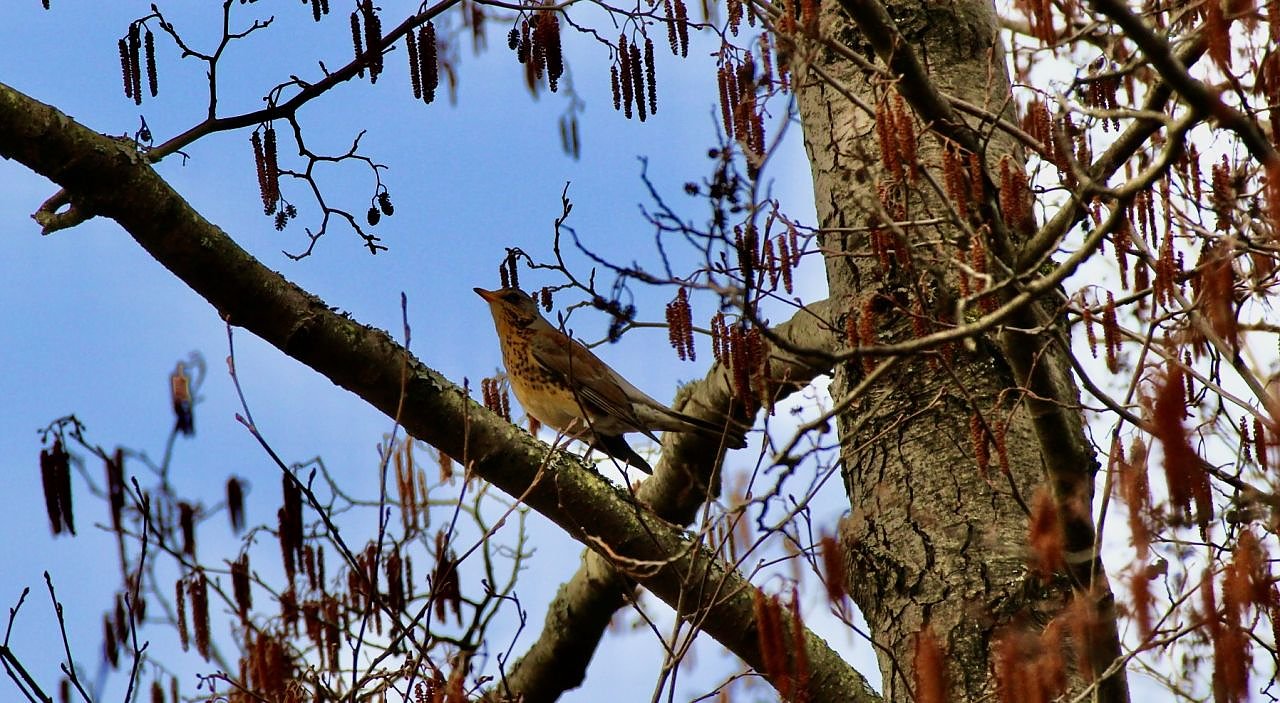 In den Parks und Gärten sind jetzt wieder mehr und mehr unterschiedliche Vögel zu sehen. Einer davon ist die Wacholderdrossel. Gut getarnt sitzt sie meistens hoch in den Baumkronen...