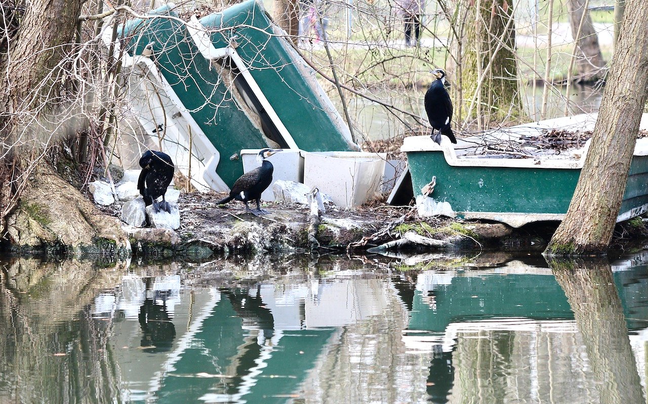 Auf der kleinen Insel im Gondelteich im Nordhäuser Stadtpark haben es sich einige Komorane gemütlich gemacht. Auf dort gelagerten Ruderbooten sitzen die Vögel bewegungslos in der Sonne und gleichen einem Stillleben, welches jeden Maler und Fotografen in seinen Bann zieht. Aber auch Spaziergänger bleiben stehen und rätseln, was es mit den großen Vögeln auf sich hat.